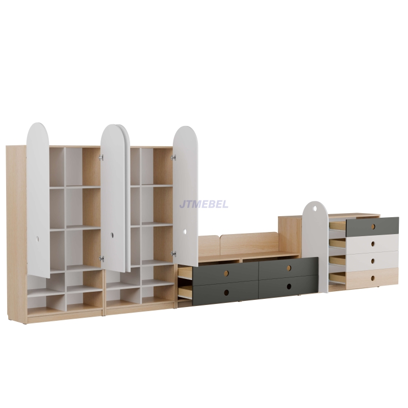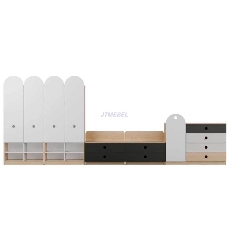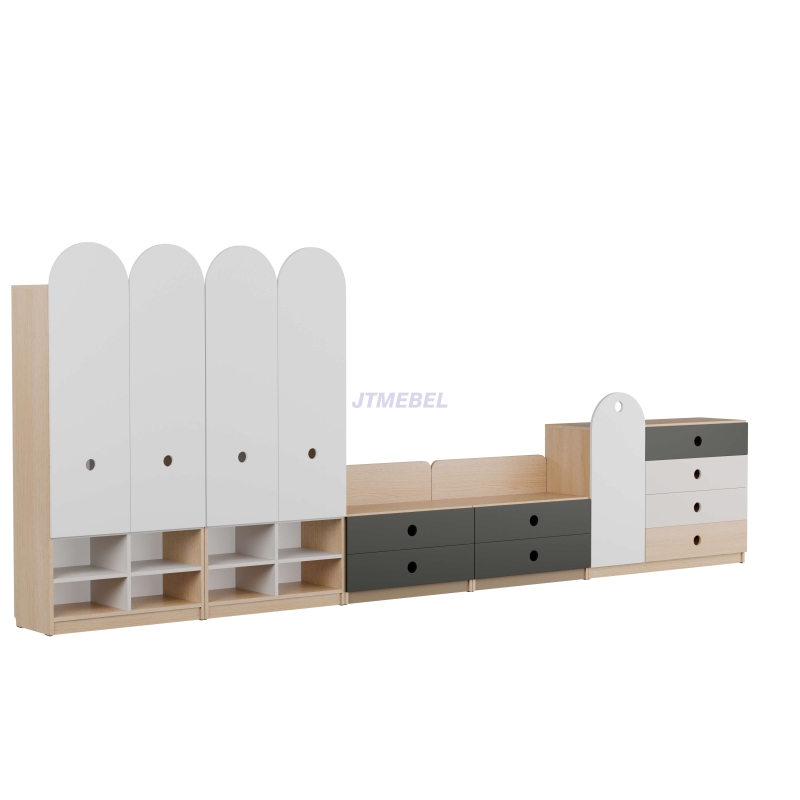 Niezwykle funkcjonalny zestaw mebli, idealnie sprawdzi się w wyposażeniu szkół czy przedszkoli. Kolekcja utrzymana w ciepłej kolorystyce oraz prostej geometrycznej formie. Rolę uchwytów pełnią wygodne otwory.